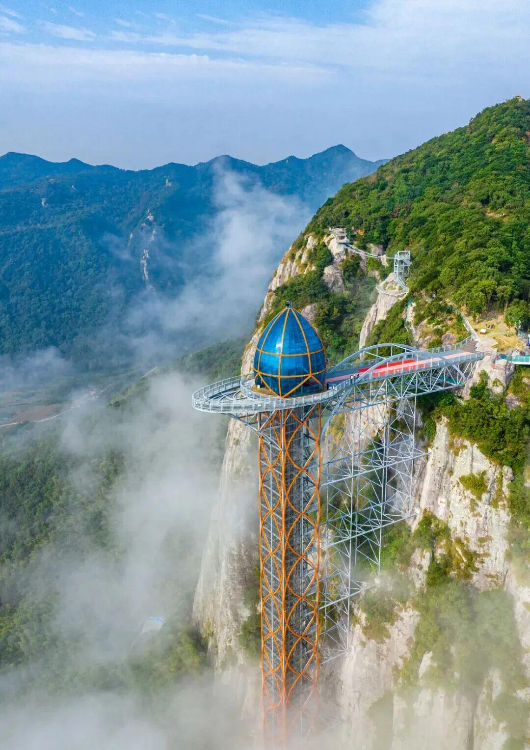 灵岩火山峰则主打火山地质风光,独特的岩石地貌诉说着岁月痕迹,“步步惊心” 玻璃桥悬于山间,高空秋千荡出悬崖的瞬间,360度山海景色扑面而来,山顶休息区的清茶一杯,让疲惫在自然中烟消云散。