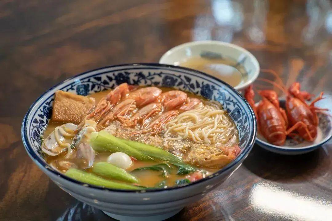 在象山,海鲜面堪称一绝,明档里鲜活海味琳琅满目,老板现点现煮。鲜汤翻滚,虾蟹贝类的鲜甜全融进汤里,嘬一口汤,再吃口劲道面条配鲜嫩海鲜,满足感瞬间拉满。
